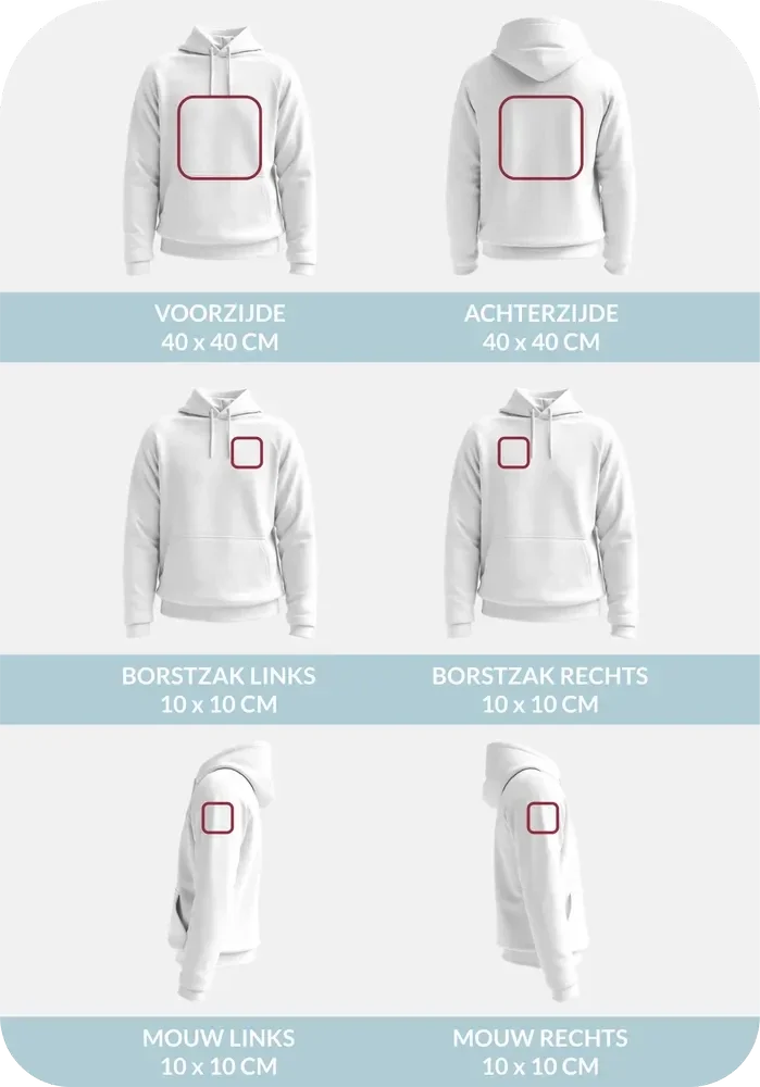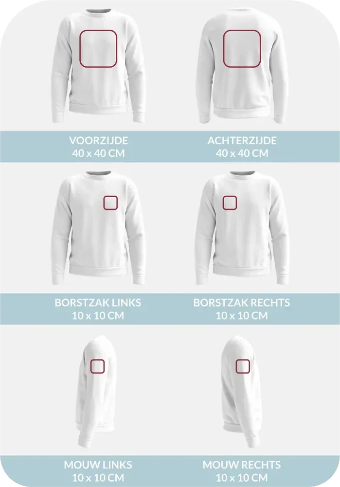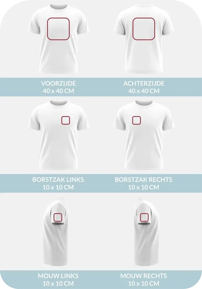 Hier vind je alle maximumformaten en opdrukmogelijkheden per product(groep).