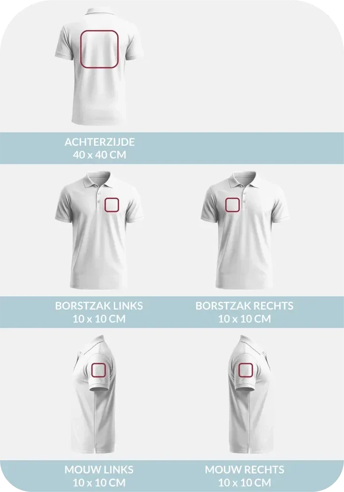 Het volledig benutten van de bedrukbare ruimte kan snel een te drukke, schreeuwerige uitstraling geven. Een doordachte, rustige opmaak straalt juist kracht en professionaliteit uit. Daarom werken wij standaard met een bedrukking van 90-95% van de maximale bedrukbare ruimte of volgens uw ontwerp.