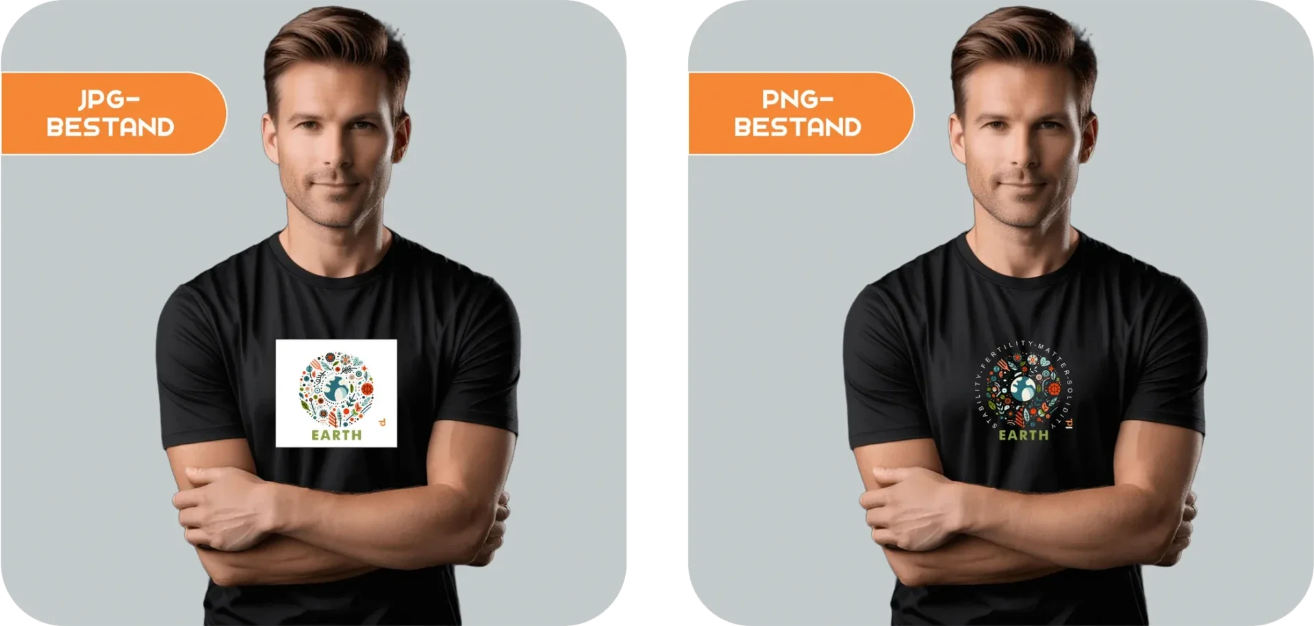 Wanneer je een JPG-bestand met een witte achtergrond uploadt, wordt deze achtergrond ook meegeprint op het kledingstuk dat je kiest.